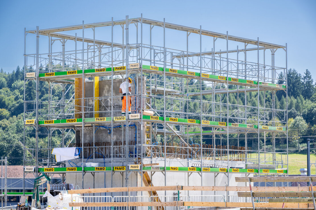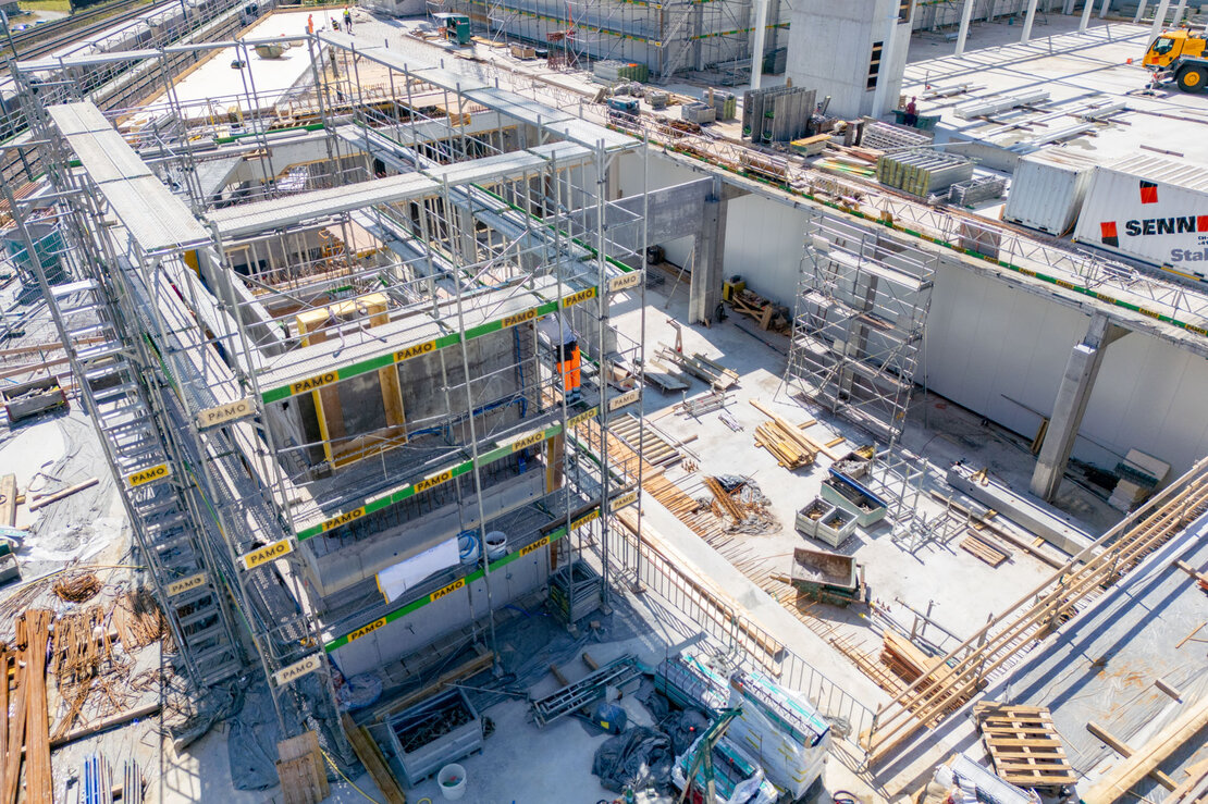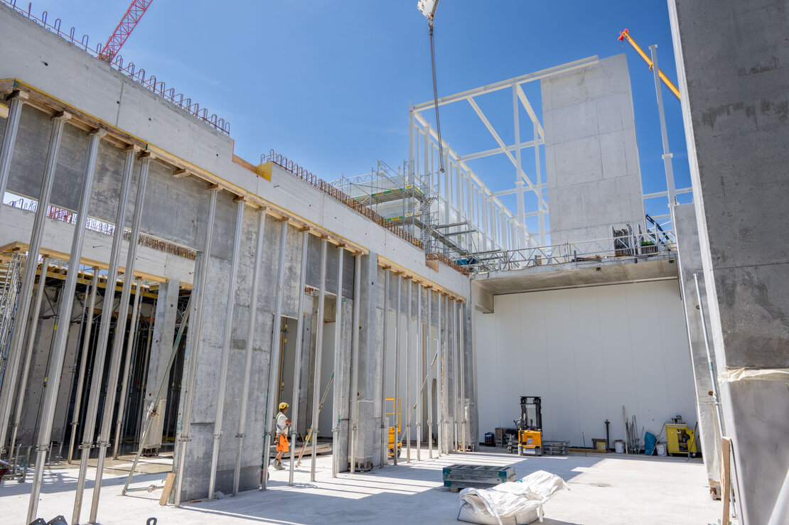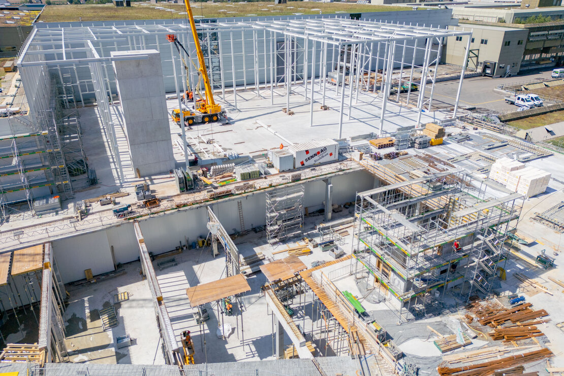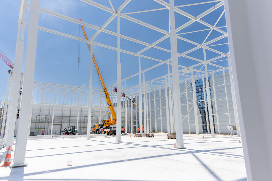 Spatenstich erfolgte im März dieses Jahres, nun stehen die Hochbauarbeiten kurz vor dem Abschluss. Die Inbetriebnahme der Logistikanlage ist für Herbst 2027 geplant.
